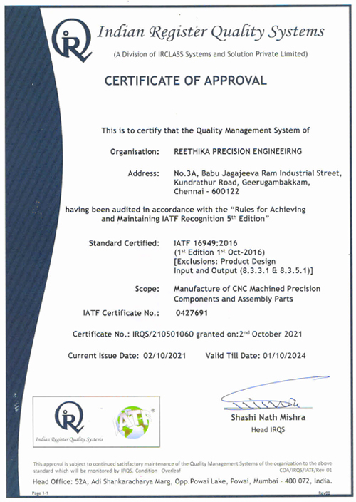 Reethika Precision Engineering is proud in supplying high precision CNC Machined Components and assembly parts from Rod, PDC, Forging & sheet metal.